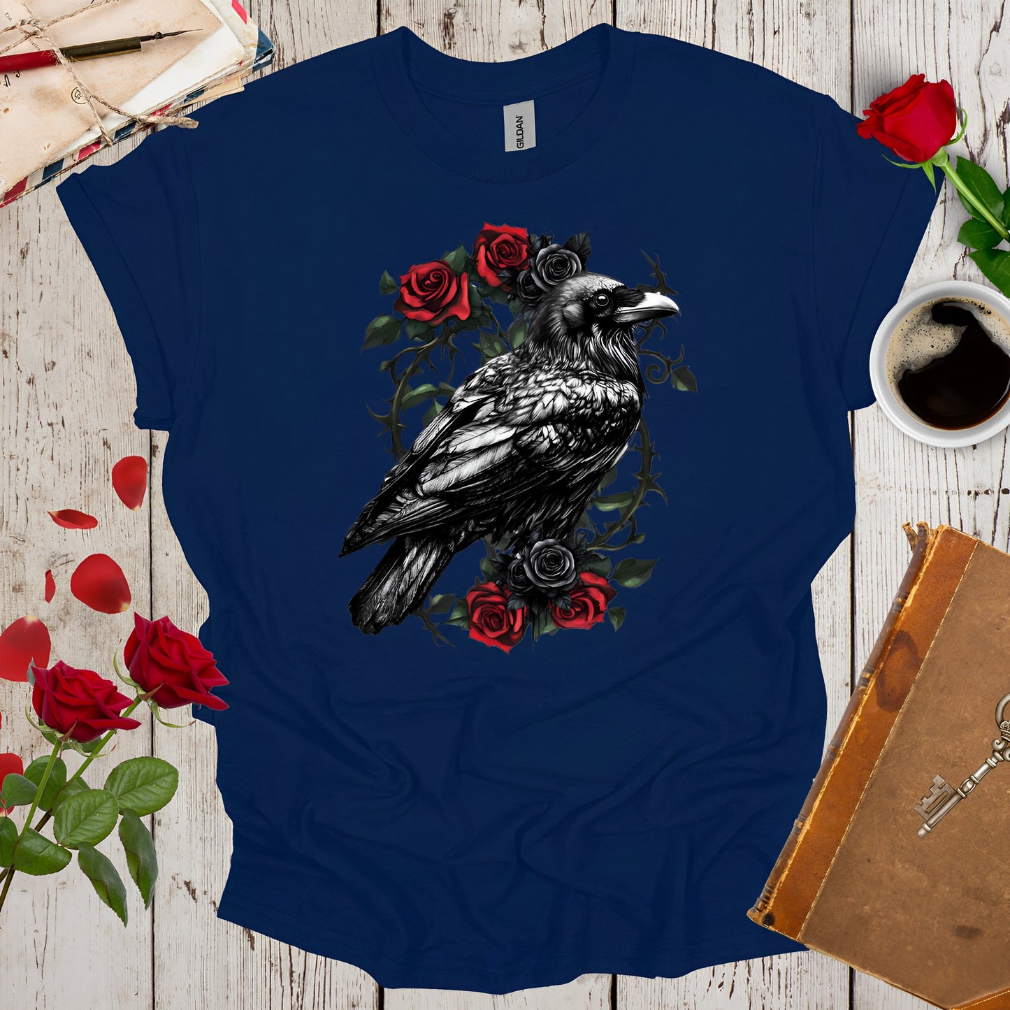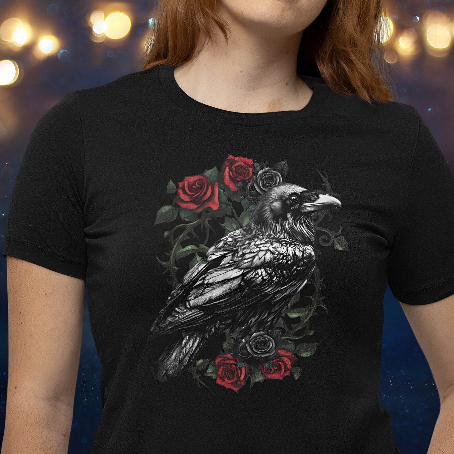 Celebrate the mystique of ravens with our unisex vintage raven T-shirt. Featuring a majestic raven surrounded by delicate gothic roses, this design is perfect for those who embrace dark romance and timeless style.