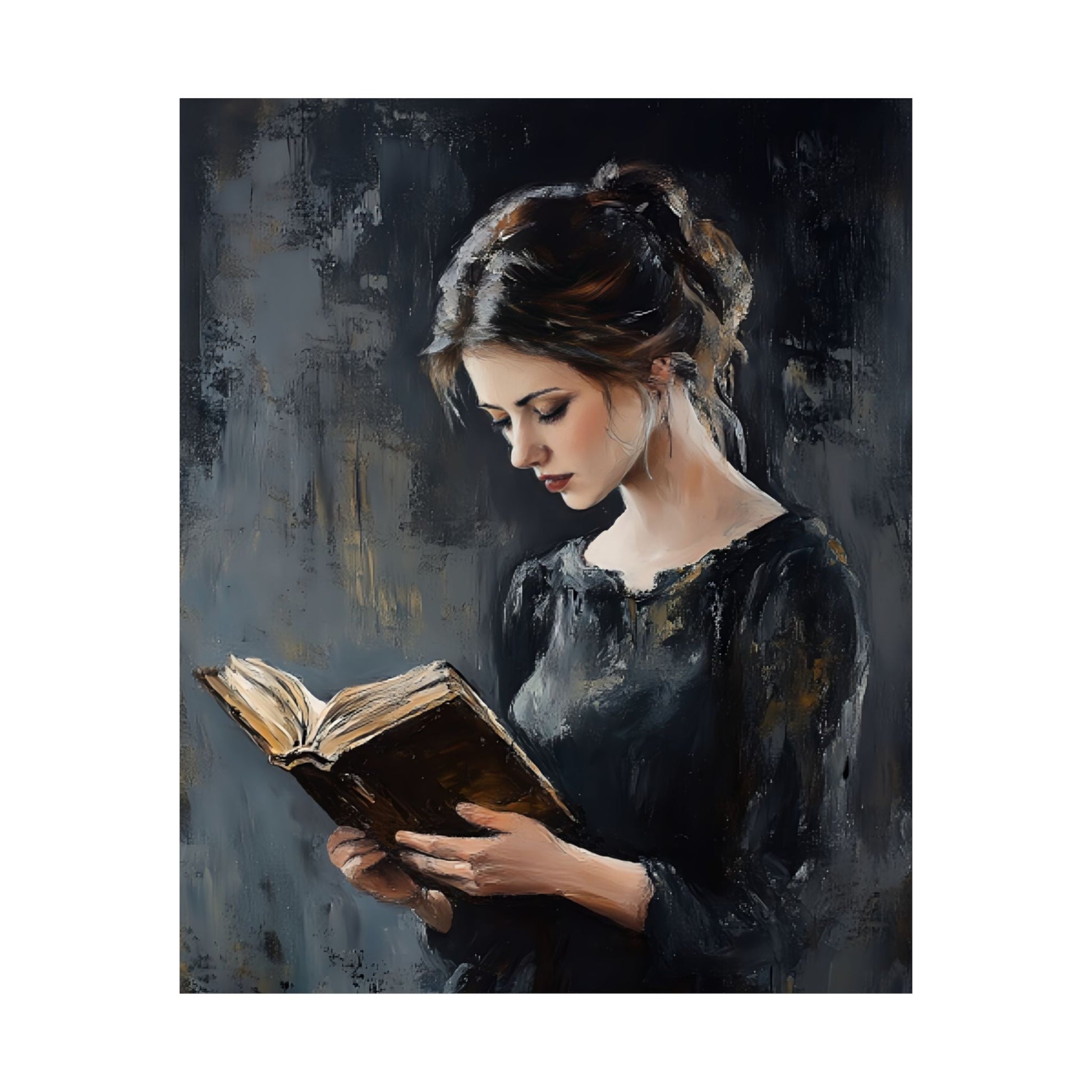 Vintage Woman Reading Wall Art Print - Bookish Moody Victorian Painting - Dark Academia Poster for Book Lovers
